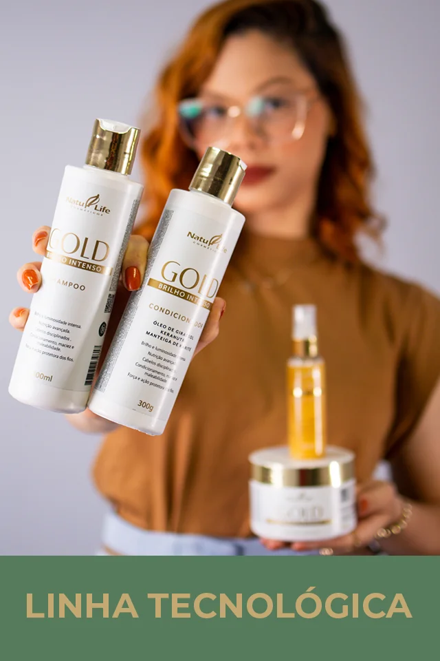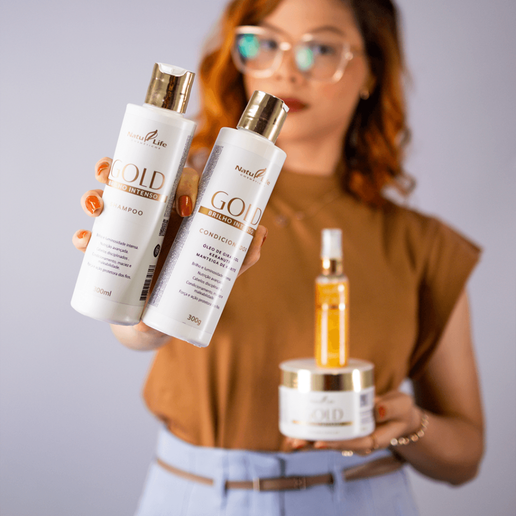 GOLD BRILHO INTENSO da Natu Life é um tratamento completo que combina óleos e aminoácidos bifuncionais para nutrir e iluminar a fibra capilar. Esse kit oferece um brilho intenso e uma luminosidade deslumbrante, fortalecendo os fios e deixando-os macios e sedosos.